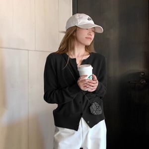 choouan_返场一穿就被问的灰开衫100羊毛圆领单排扣针织开衫
