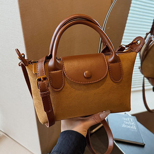 跨境2025秋季新款磨砂手提包质感大容量饺子包简约百搭女士斜挎包
