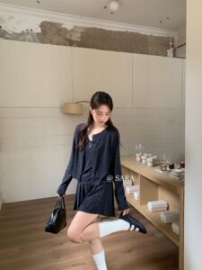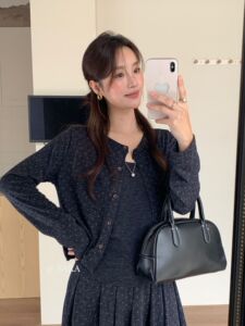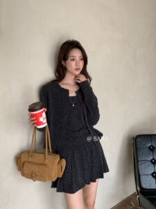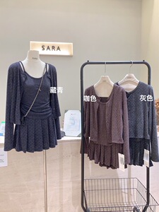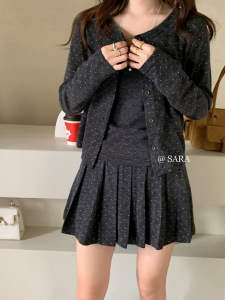 凯羽尚LSARAJ秋韩系波点开衫吊带搭高腰A字百褶半身裙三件套套装