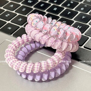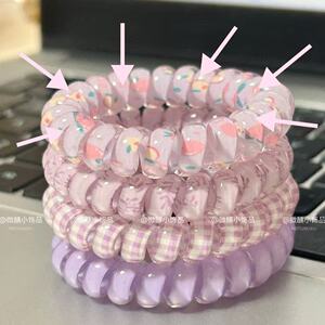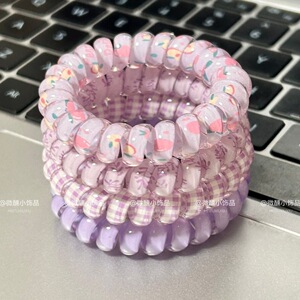 新款夏天清新紫色芋泥水蜜桃敲可爱的碎花电话线发圈可爱头绳发饰