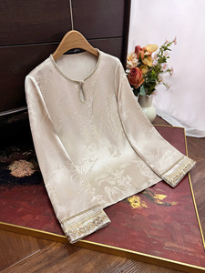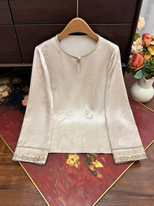 2025早秋新款新中式国风提花蕾丝边内搭上衣圆领套头休闲百搭小衫