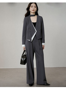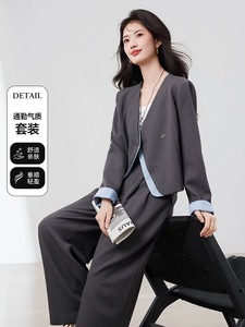 假两件设计感西装套装女2025秋季新款撞色拼接小西服阔腿裤两件套