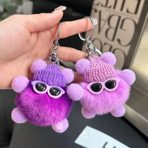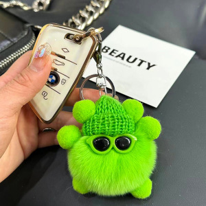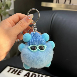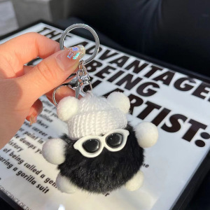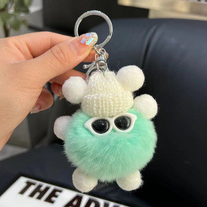 可爱仿兔毛小煤球包包挂件书包丑眼睛公仔挂饰卡通玩偶汽车钥匙扣