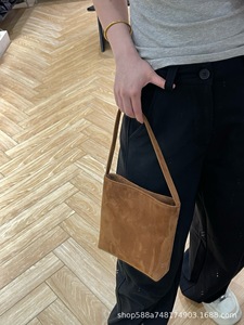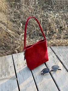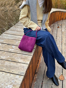 复古红色磨砂麂皮包包女百搭小众手提包单肩斜挎包水桶包手拎小包