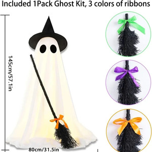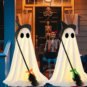 2025万圣节发光幽灵装饰女巫扫把幽灵灯鬼节庭院派对花园草坪摆件