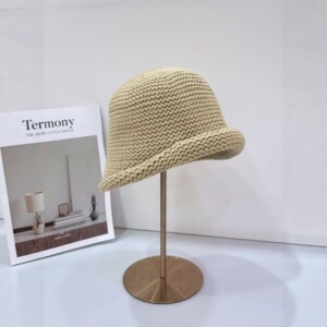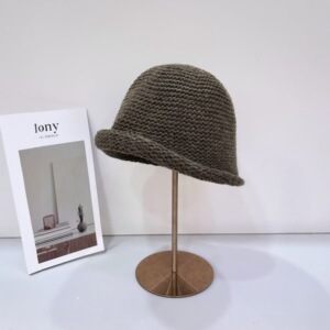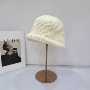 批发25年早秋新款手工钩织粗毛线帽子女韩版街头纯色高品质包头帽