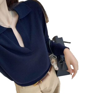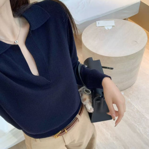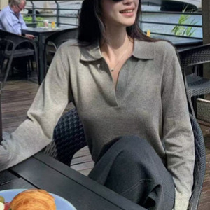 高智淡人毛衣 老钱风Polo领针织衫女慵懒休闲V领长袖上衣
