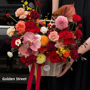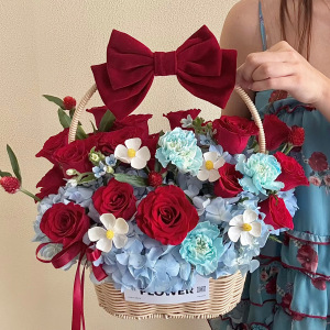 上锦 浪漫仿藤编制鲜花篮手工编织插花篮花束礼物包装篮手提篮diy