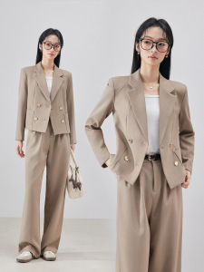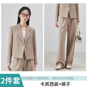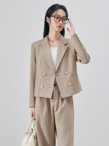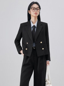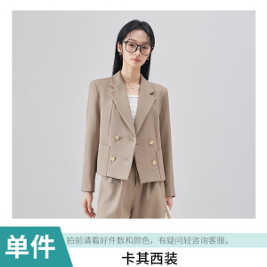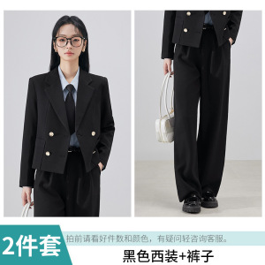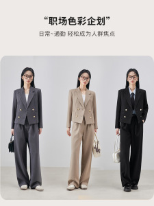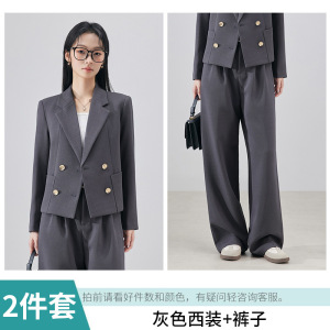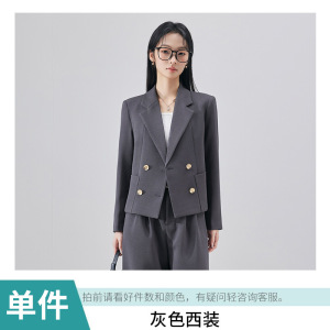 灰色西装套装女春秋轻职场小个子短款职业装通勤面试正装西服外套