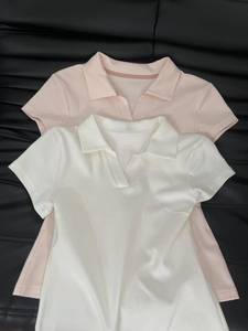 纯欲纯色正肩polo衫翻领短袖t恤女款夏季新款设计感掐腰显瘦上衣