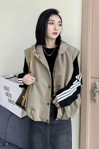 2025连帽马甲背心马夹春秋新款坎肩无袖休闲设计宽松气质上衣外穿