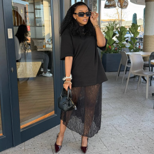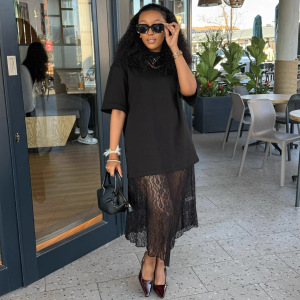 欧美女装气质优雅蕾丝拼接长款连衣裙女非洲时尚洋气新款长裙子女