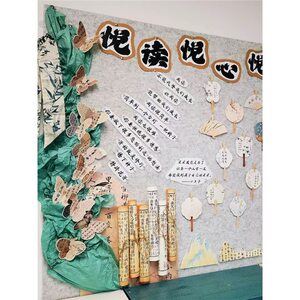 班级书香文化墙国风环创新中式墙面装饰幼儿园小学教室布置