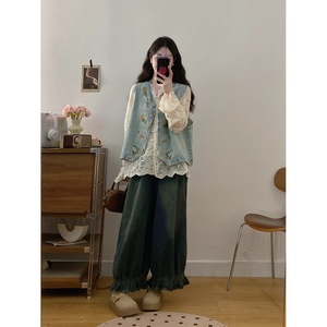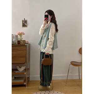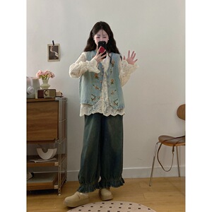 【现货飞】秋季韩式新款设计感重工绣花大码宽松显瘦牛仔马甲女外