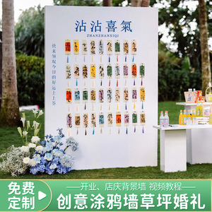 创意沾沾喜气结婚礼签名到背景墙游园会气氛围布置迎宾区kt板