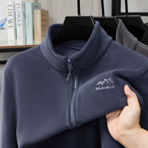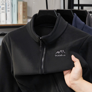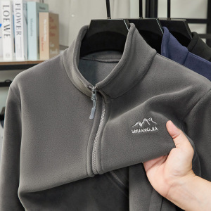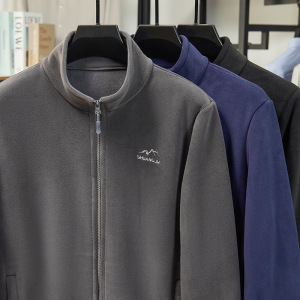 奥粒绒外套男士秋冬季加绒加厚保暖休闲拉链开衫立领一体绒夹克衫