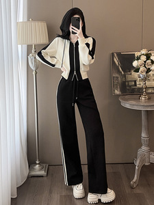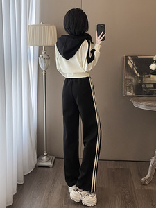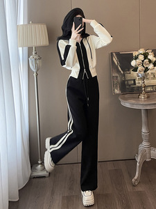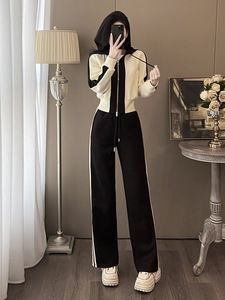 今年流行休闲运动套装女秋冬欧货时髦洋气减龄拼色长袖卫衣两件套