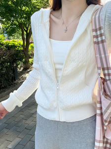 韩系慵懒风针织开衫女2025新款秋春穿搭麻花连帽显瘦毛衣外套上衣