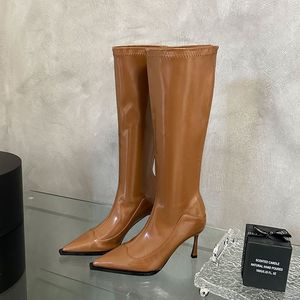 辣妹尖头高跟长靴女黑色细跟长筒靴后拉链靴子百搭骑士靴高筒靴秋