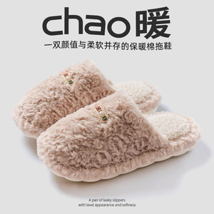 毛绒拖鞋2025新款室内家居冬季保暖棉拖鞋女士加厚软底静音款棉鞋