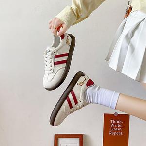 港风校园休闲板鞋女款2025新款百搭小众鞋子学生厚底小白鞋德训鞋
