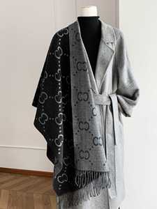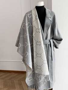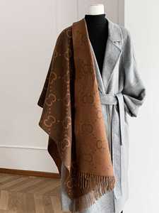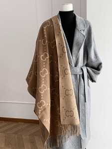 新款冬季保暖高级围巾加厚围脖时尚百搭双面网红仿羊绒披肩C字母