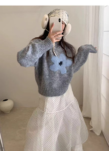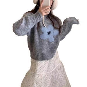 韩系甜美减龄花朵圆领长袖毛衣女秋冬日系软糯外穿内搭针织衫上衣
