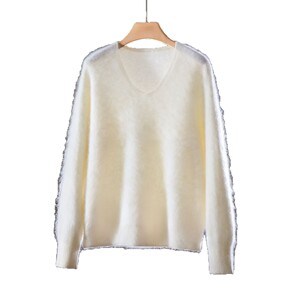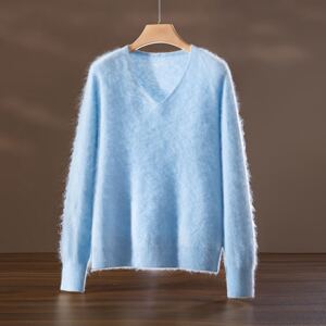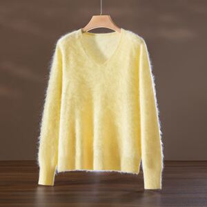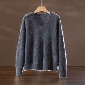 云端”V领拉绒拉毛羊毛毛衣女 羊绒混纺针织衫无缝
