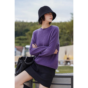 【无缝一体】重磅山羊绒拉绒毛衣软糯长袖打底衫宽松显瘦针织衫女