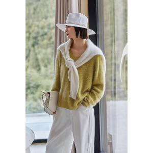 全羊绒拉毛V领针织衫