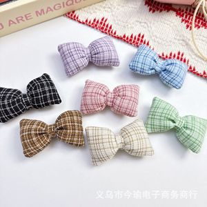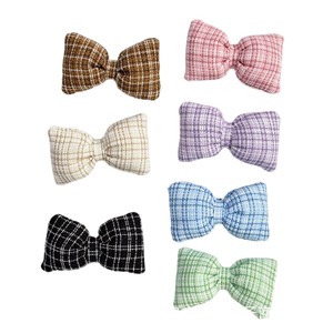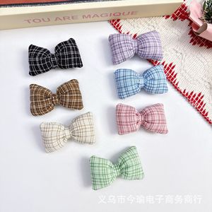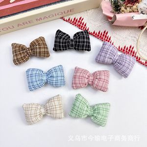 秋冬充棉蝴蝶结辅料韩版格子枕头结头饰发夹包包装饰DIY饰品配件