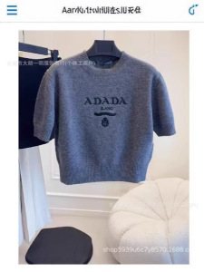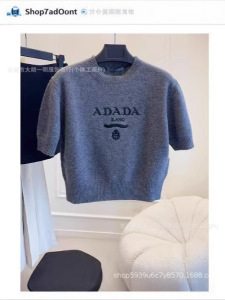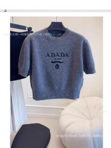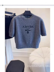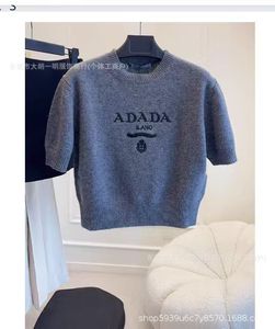 P家2025新款字母刺绣徽标羊毛T恤羊绒混纺时尚针织衫短袖毛衣女