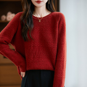 秋冬新款100%羊毛镂空毛衣女宽松针织衫大码时尚上衣短款长袖小衫