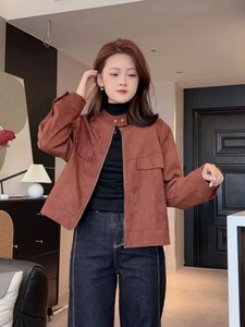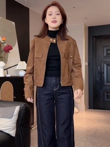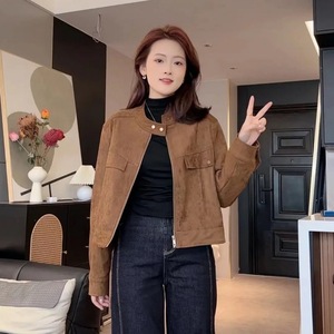 复古潮流短款麂皮绒外套女秋季新款时尚百搭休闲小个子夹克上衣潮