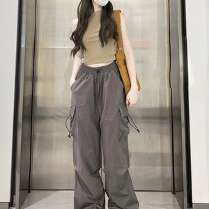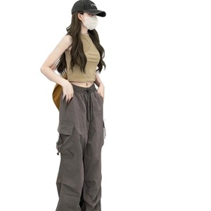 美式复古束脚工装裤女春秋学生宽松显瘦大码直筒ins休闲阔腿裤子