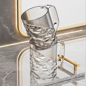 条纹轻奢漱口杯家用透明带孔塑料杯子牙缸牙杯刷高颜值情侣洗漱杯