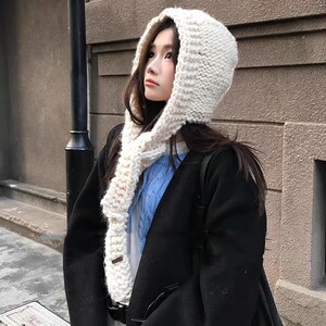 韩国东大门新款手工粗毛线编织帽子女秋冬针织帽保暖巴拉克拉法帽