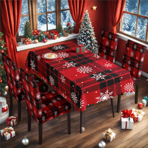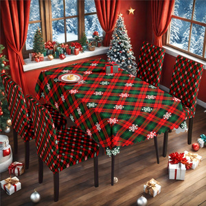 跨境圣诞经典红绿格桌布椅子套新款装饰餐桌布餐椅套圣诞桌布椅套
