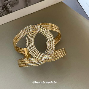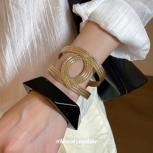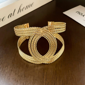 欧美金属感交叉双C镂空开口手镯时尚百搭气质手环小众设计感手饰