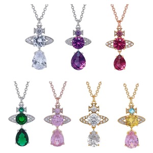 西太后土星人鱼泪水滴吊坠项链轻奢超闪气质小众锁骨链星球元素