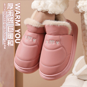 25新款包跟棉拖鞋PU防水家居秋冬季厚底防滑月子女款男棉鞋毛拖鞋