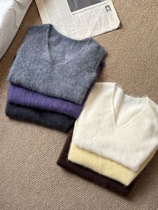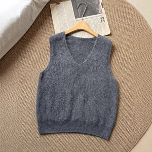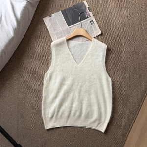 25秋冬新款羊毛拉绒深V领套头针织马甲女无袖毛衣叠穿百搭背心软