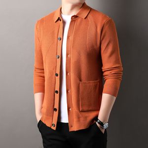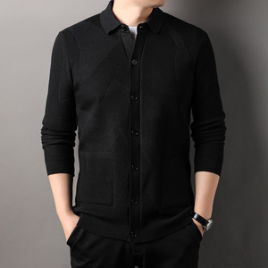 秋冬季新款男士提花翻领针织开衫纯色纽扣口袋简约百搭毛衣外套男