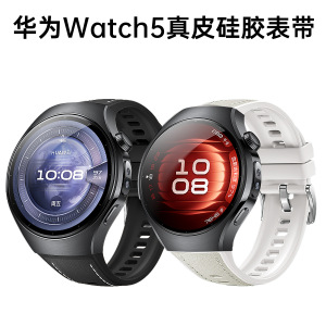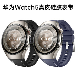 适用华为watch 5专用无缝隙真皮表带硅胶贴皮腕带42/46mm一件代发