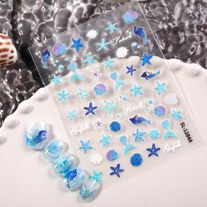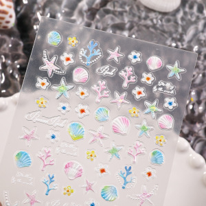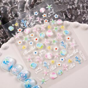 夏日海洋风美甲贴纸5D浮雕梦幻珊瑚贝壳海星diy指甲贴纸饰品 SL款