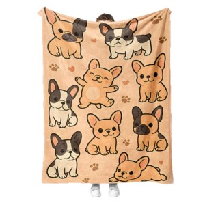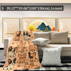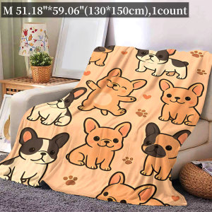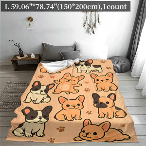 厂家直销1条起批!萌宠派对法兰绒毯|法斗全息卡通印花