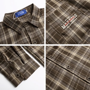 日系复古字母刺绣宽松休闲潮流百搭男女情侣秋季格子领带衬衣外套