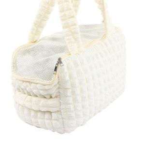 新款时尚泡泡布宠物包便携舒适透气摇篮网设计外出宠物单肩包批发