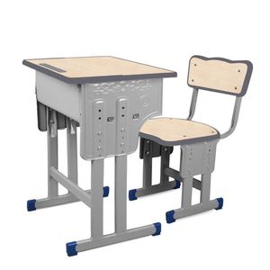 批发款单人双柱桌子+椅(木纹灰边)