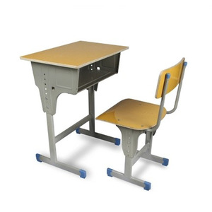 批发款单人桌+凳(黄色多层板)